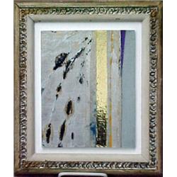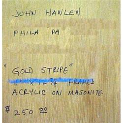 John Hanlen, "Gold Stripe", acrylic on masonite, signed Hanlen (U.L.), see reverse, framed, image measures 8 1/2" x 6 3/4"