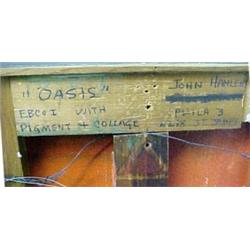 John Hanlen, "Oasis", pigment and collage, signed