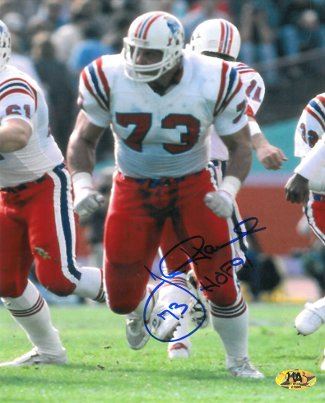 John Hannah joined the Patriots in 1973 as the 4th overall pick in the 1973 NFL Draft. He played his entire professional career in Foxborough. While considered somewhat short by NFL standards, Hannah made up for this with great speed and quickness as well as powerful legs. Hannah excelled as a pass protector, run blocker and as the pulling guard on sweeps. In 1985, Hannah helped guide the team to its' first AFC title and Super Bowl appearance. Hannah retired from the NFL after playing in Super Bowl XX.Hannah was named All-Pro 10 times (1976-1985) and All-AFC 10 times (1974, 1976-1985). He was also selected to play in 9 Pro Bowls. John Hannah has hand autographed this New England Patriots 8x10 Photo with HOF 91 inscription. Private Signing Hasbrouck Heights, NJ, on 10/19/2013. MAB Hologram and Certificate of Authenticity from Athlon Sports.