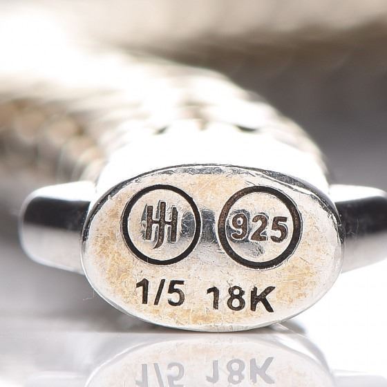 Description: This stunning bracelet features the signature hand woven chain with reversible style of sterling silver side and 18 karat gold. It showcases diamonds on the clasp weighing approximately .24 total carat weight.