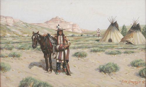 John Hauser (1859-1913). "Preparing for the Daily Ride". 7 ½” x 12 ¼”. Gouache on Board. Dated 1895. Fine condition. (est $9,000-12,000)