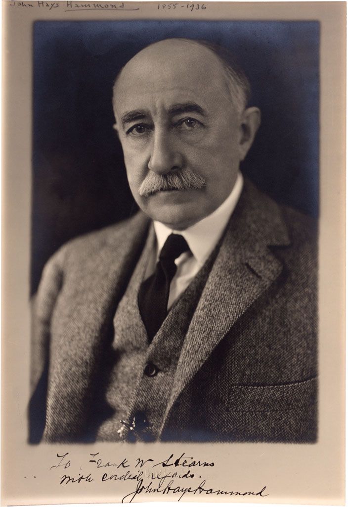 c1920s-30s - John Hays Hammond ((1855-1936) “…mining engineer, multimillionaire, and special ambassador of President Taft to the Court of St. James.” he was known as "The man with the Midas touch." Photo Measures 7.5" x 10.5" and is signed in fountain pen at the bottom with the salutation "To Frank W. Stearns with cordial regards." Frank Stearns was the son of Richard H. Stearns, founder of R.H. Stearns Department Stores. He was also a close friend to President Calvin Coolidge.