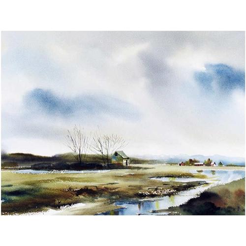 Canadian [1924-2001] FARM IN THE FOOTHILLS; 1976 watercolour on paper 13 x 17.25 in. (33 x 43.8 cm) signed & dated