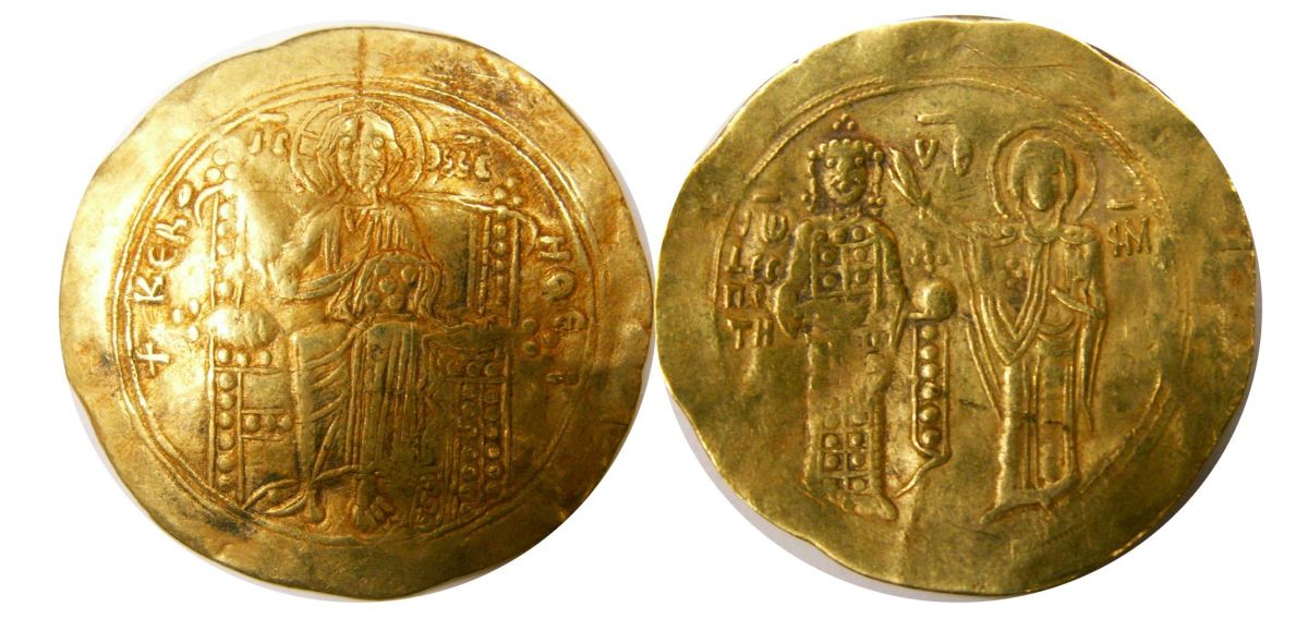 John II, Comnenus. 1118-1143 AD. AV Hyperpyron (4.29 gm). Third coinage, struck 1137-circa 1143. Constantinople mint. Christ enthroned on square-backed throne / The Virgin, nimbate, crowning John.