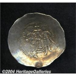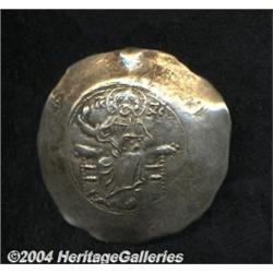 <B>John II.</B></I> 1118-1143. EL aspron trachy (32 mm, 4.13 g). Constantinople. Christ enthroned facing, raising right hand in benediction and holding Gospels / John and St. George standing facing, supporting between them patriarchal cross on three steps. DOC 8; Hendy pl. 10, 3-4; SB 1942. Near VF. <BR><I>From the Geneva Collection.</B></I> <BR><BR><B>Important notice:</B> Heritage usually auctions material at the rate of 200-250 lots per hour. On some occasions eBay Live bid software or the Internet may not be able to keep up with the pace of the auction. We recommend placing a realistic absentee bid now as insurance to avoid disappointment. Occasionally the auctioneer may eliminate or reject an eBay Live bid, and the auctioneer may also reopen a lot after the close of the eBay live bidding (usually because we missed an audience bid), and may reject your bid even if it shows you as the winning bidder. By bidding via eBay Live, you agree that Heritage may award the lot to another bidder at its sole discretion under the circumstances described above or any other reasonable circumstances. Since eBay bids are not shown to us until we open the lot on the floor, we treat those bids just like floor bids. In most cases the floor responds before the eBay bid is presented to us, due to Internet lag time, so for consistency we have made it a policy that floor bids are always considered first over tie eBay live bids. Also please note that all Heritage lots purchased through eBay Live carry a 20% Buyer's Premium. Please make sure you read the Terms and Conditions before you bid.