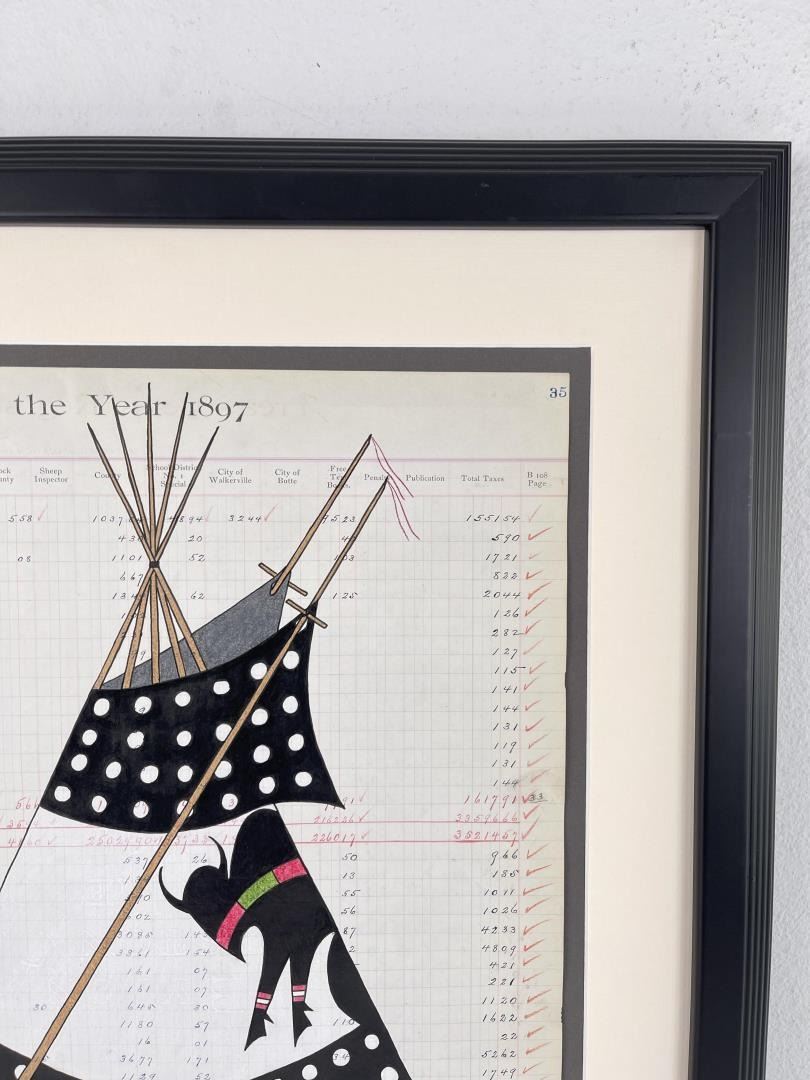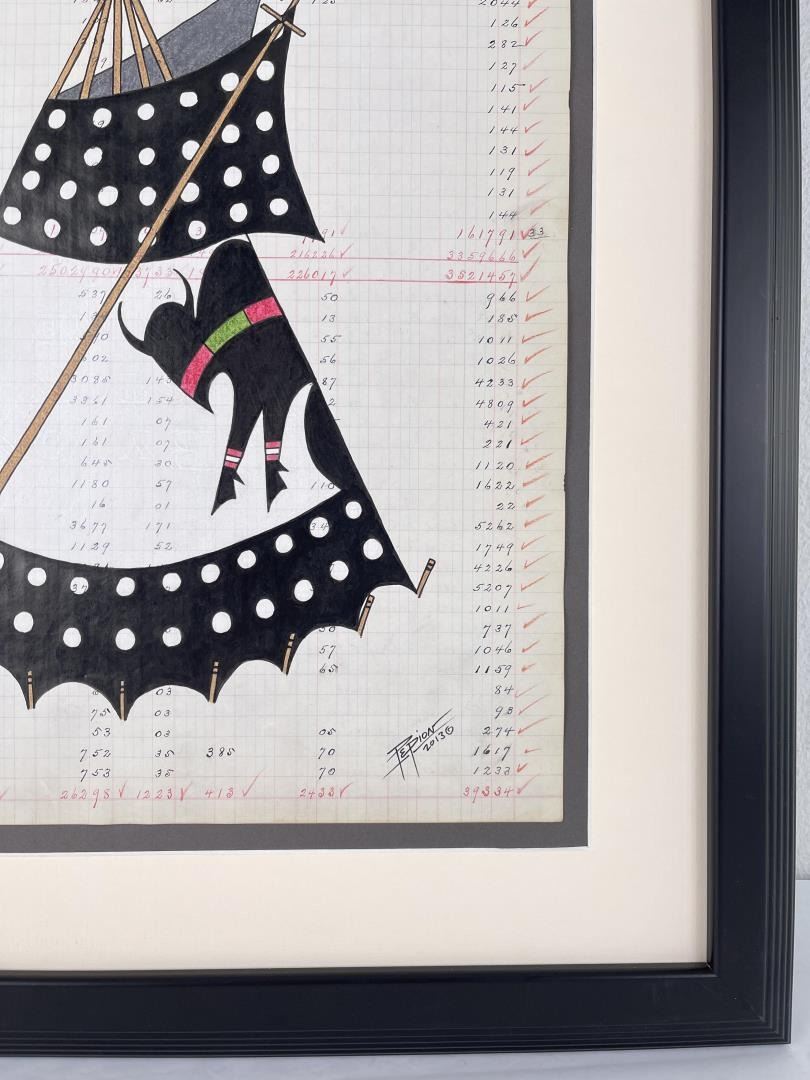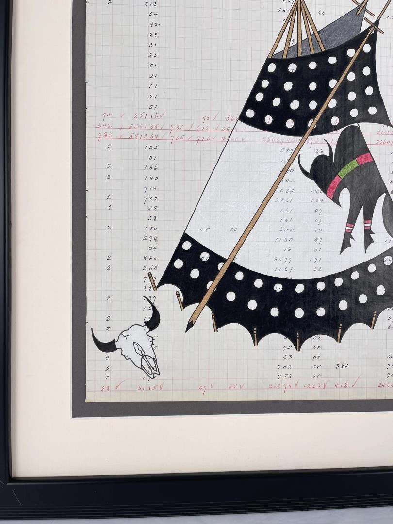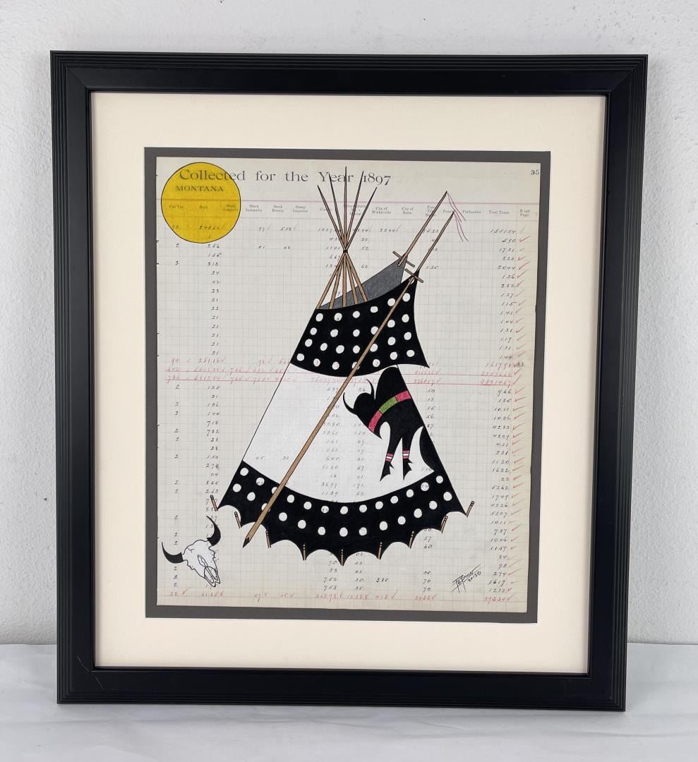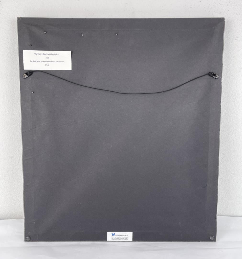21 1/2" by 24" framed. Title is White Buffalo Medicine Lodge.