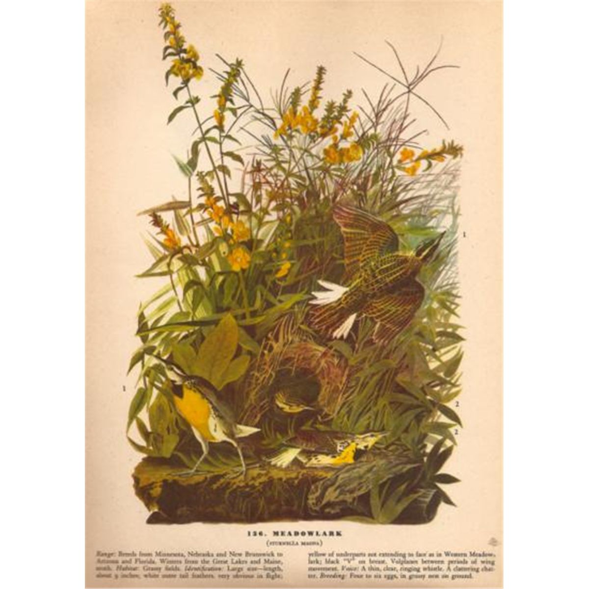 MATTED PRINT The Birds of America - John James Audubon Circa 1946 ~ Meadowlark