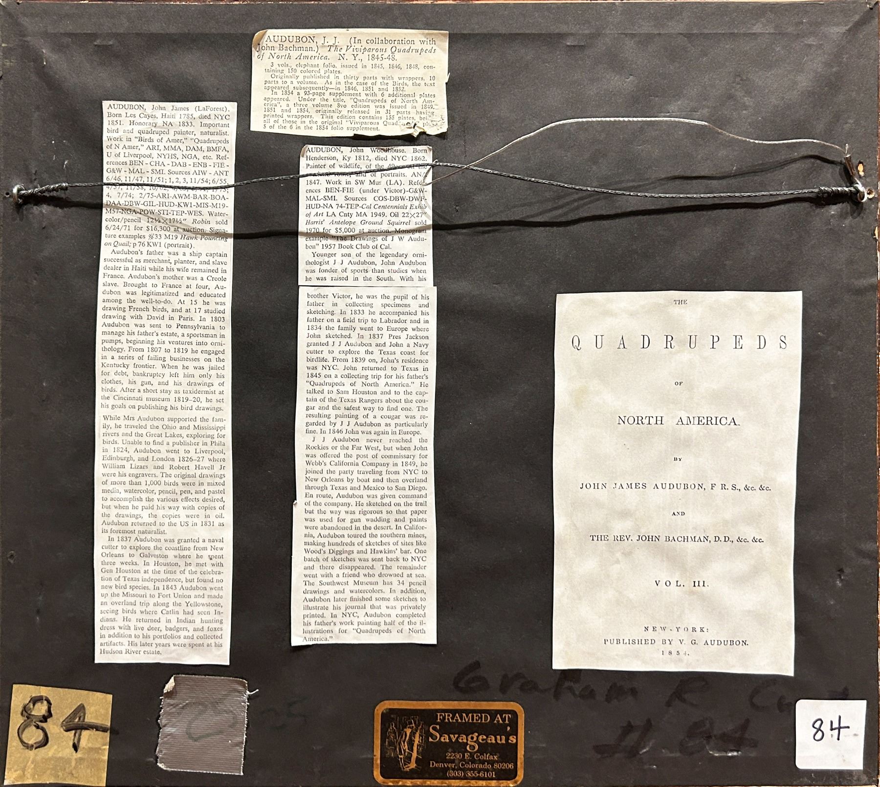 Plate 46 of the Royal Octavo Edition, Volume I of Audubon's Viviparous Quadrupeds of North America. 1849.