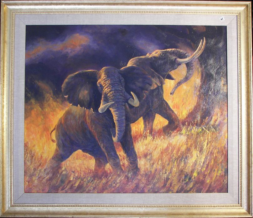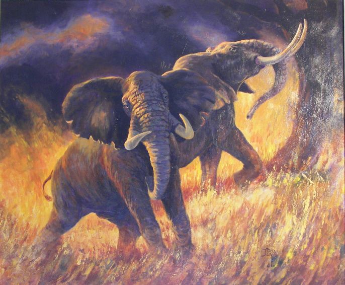 , John Jones, , Oil On Canvas , African Elephants , 30" x 36" , Signed Lower Right , (2034)