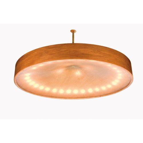 Artist Name: John Lautner<BR>Manufacturer: Custom designed<BR>Description: Hanging light<BR>Circa: 1969<BR>Medium: Constructed of mapel and steel with an inverted disc shade with 4 perforated steel inserts which create a pattern on the ceiling.<BR>Signatu