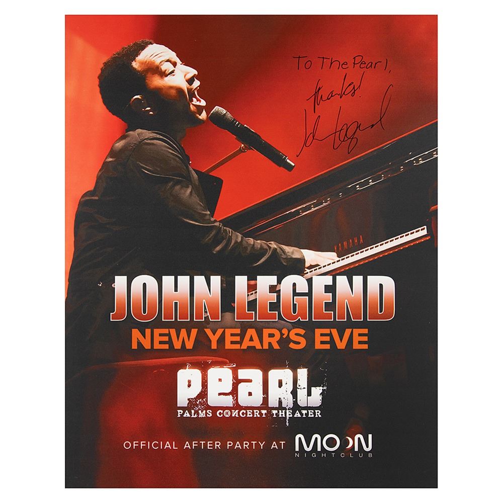 Appealing color 23 x 29.25 poster for a ‘New Year’s Eve’ concert by John Legend at the Pearl Concert Theatre at the Palms Casino Resort in Las Vegas, Nevada, on December 31, 2011, signed and inscribed in black felt tip, “To the Pearl, thanks, John Legend.” Affixed to a same-size mount and in very fine condition. The consignor notes that the autograph was obtained in person.