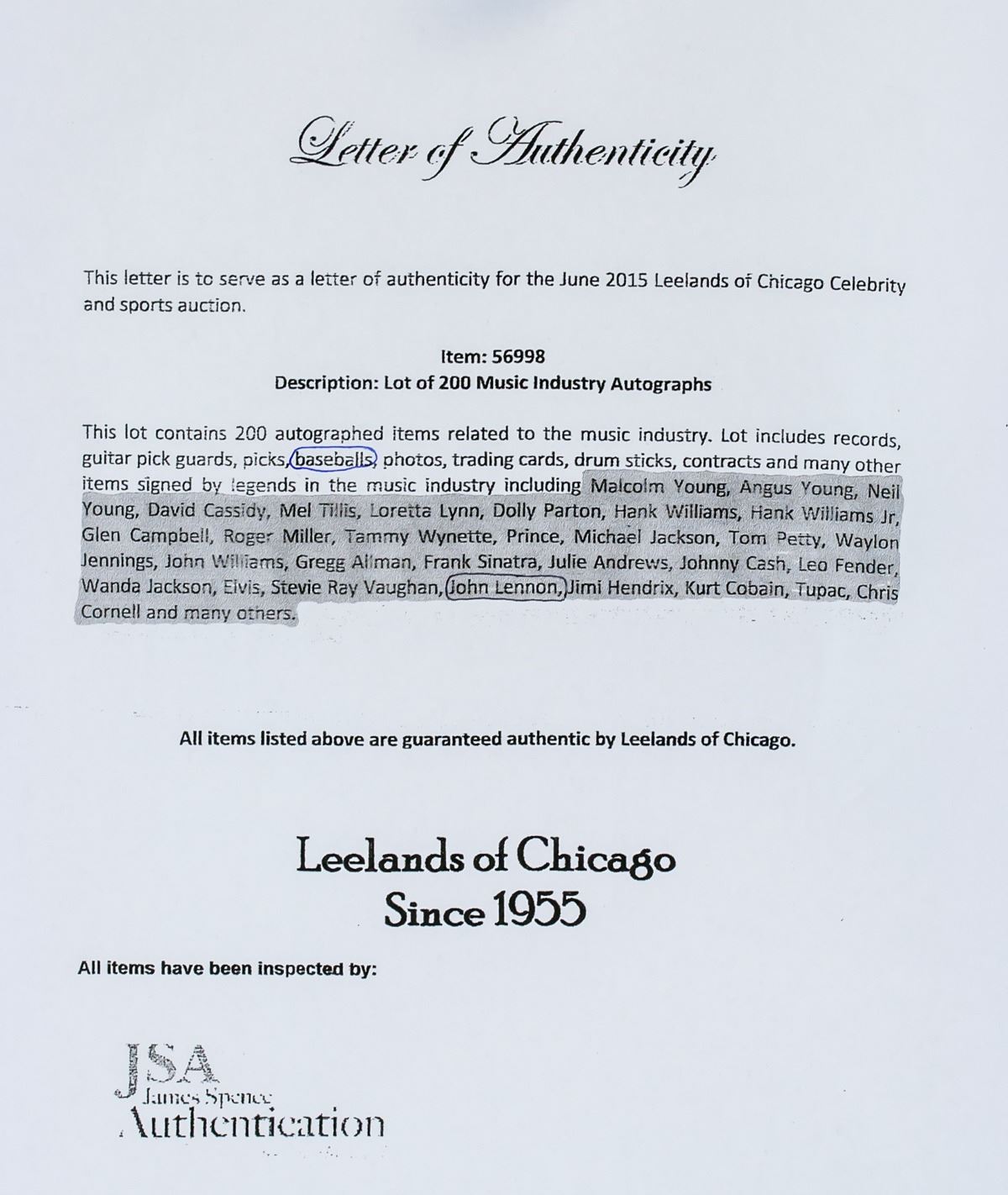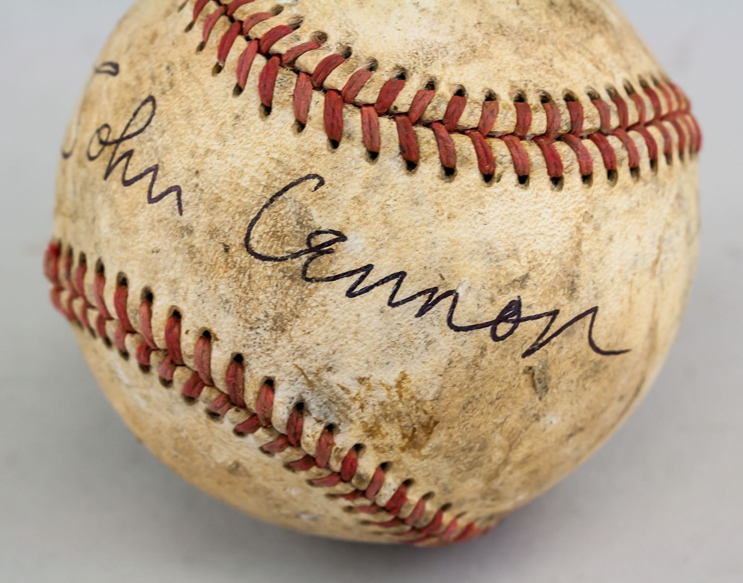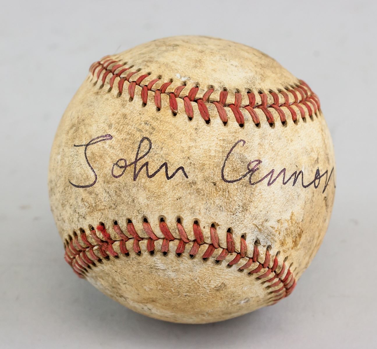 Autographed MLB baseball signed John Lennon (1940-1980 British). With letter of authenticity offered by James Spence Authentication. 143 grams