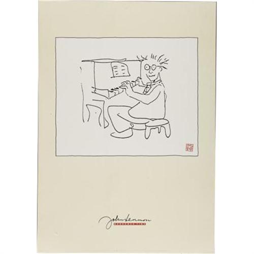 <B>John Lennon "Borrowed Time" Lithograph.</B></I> An 24" x 36" lithograph of an ink drawing by John Lennon titled "Borrowed Time," featuring a drawing of a bespectacled piano player. In Excellent condition.<BR><BR><b>Shipping:</b> Flat Material, Large (<a target="_blank" href="http://www.heritageauctions.com/common/shipping.php">view shipping information</a>)