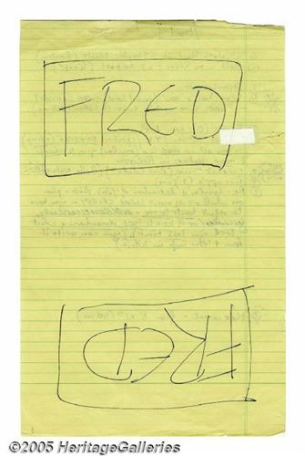 <B>John Lennon Personal Notes.</B></I> Offered is a sheet of yellow notebook paper featuring a to-do list handwritten in black ink by Lennon and addressed to "Fred," dated May 29, 1979. Of note: "Sean has a 'new' (second hand) guitar (acoustic) -- it needs some work -- sooner the better (ask me)." In excellent condition. <I>With COA from PSA/DNA.</B></I>