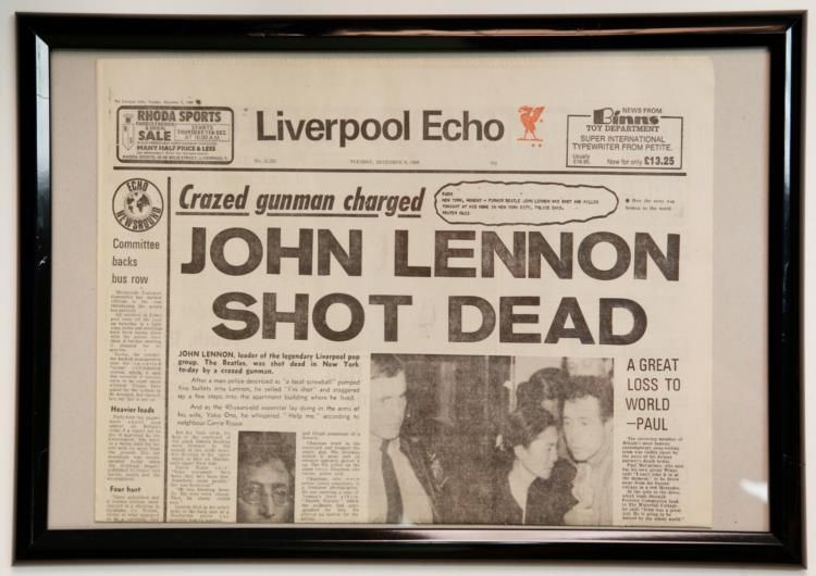 We present you with a framed front page newspaper headline from the Liverpool Echo, "John Lennon Shot Dead," published on December 9, 1980. This clipping is mounted in an 14" x 20" black frame and comes from an estate collection. This jaw dropping news headline will be remember for eternity.