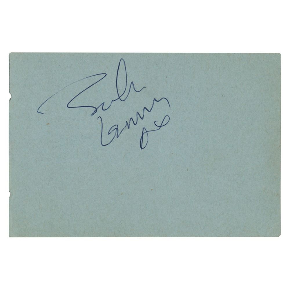 Ballpoint signature, “John Lennon, xx,” on a light green 4.5 x 3 album page. In very fine condition. Accompanied by a letter of provenance stating that the autograph was obtained by an area fan club secretary in late 1963 / early 1964, when she was “present at Montague St. London when John & Ringo…we’re moving house, she was there with Rory Storm & others helping out with removals.”