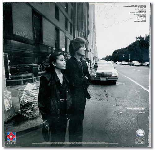 Released on November 15, 1980, “Double Fantasy” was the last album John Lennon completed before his tragic death on December 8, 1980, only 23 days after the album was introduced to the world. With such a short space of time to sign this album, it’s no wonder that this is a very, very rare item and there are no more than 8 authentic examples known to date. Here is one of those rarities, this one was signed on the reverse by John who has written “for Cathy love,” before his signature. The signature, which is in black felt tip pen, is rushed and somewhat faded. “Double Fantasy” covers signed by John Lennon are very desirable, as this represents the last works of a musical genius beloved by millions to this day
