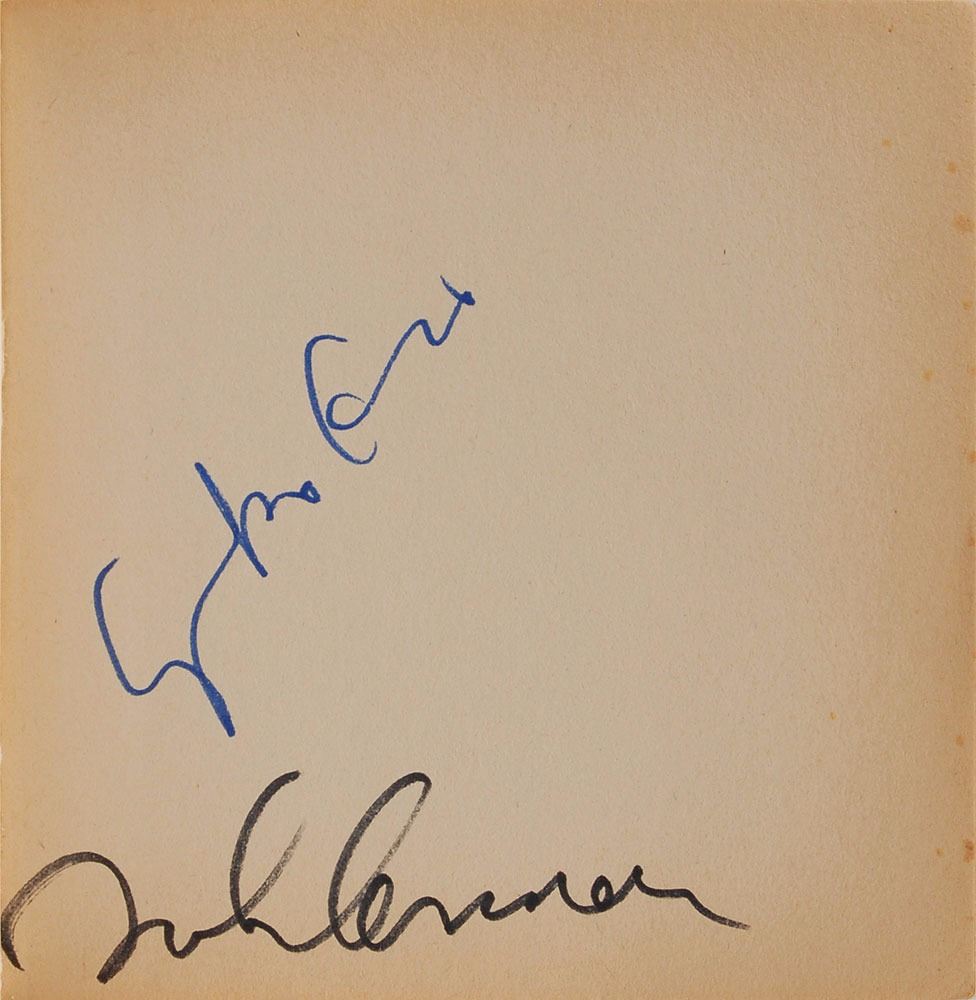Signed book: Grapefruit. First Sphere Books edition. London: Sphere Books, 1971. Softcover, 5 x 5. Signed on the first free end page in black felt tip by John Lennon and in blue felt tip by Yoko Ono. In fine condition, with a few unobtrusive spots of foxing to right edge of signed page. Consignor notes that both signatures were obtained at Selfridge's in London on July 15, 1971, at the launch of this paperback edition of Yoko's book. A sought-after dual-signed book with great cult appeal, the cover of this uncommon Sphere edition integrates the cheeky subject matter of Ono's 1966 short film Bottoms. Pre-certified REAL.