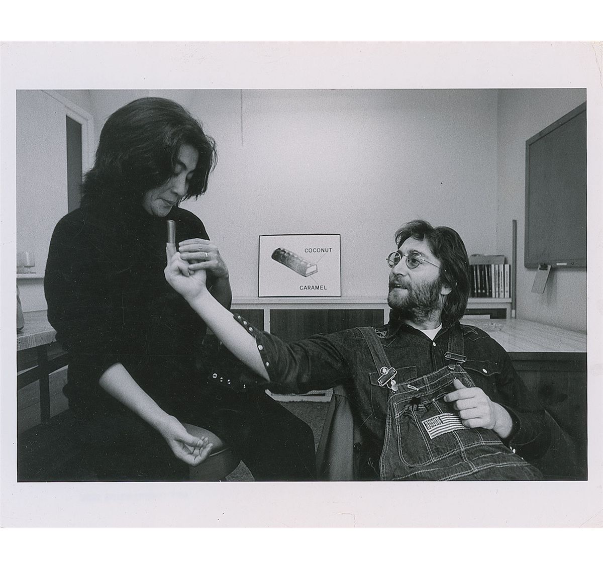 Original 1970 unsigned glossy 10 x 8 photo of Lennon and Ono together in New York City, by Annie Leibovitz of Rolling Stone magazine. Reverse bears original photographer’s tag and stamp. Light scattered creases, primarily to borders and corner tips, a couple trivial surface spots, and a small tear to the lower border, otherwise fine condition. Leibovitz started her career in 1970 with the fledgling Rolling Stone magazine, and this photo is from her first important assignment. She was also the last person to photograph Lennon, taking the famous image of him nude and wrapped around Yoko just hours before his death.