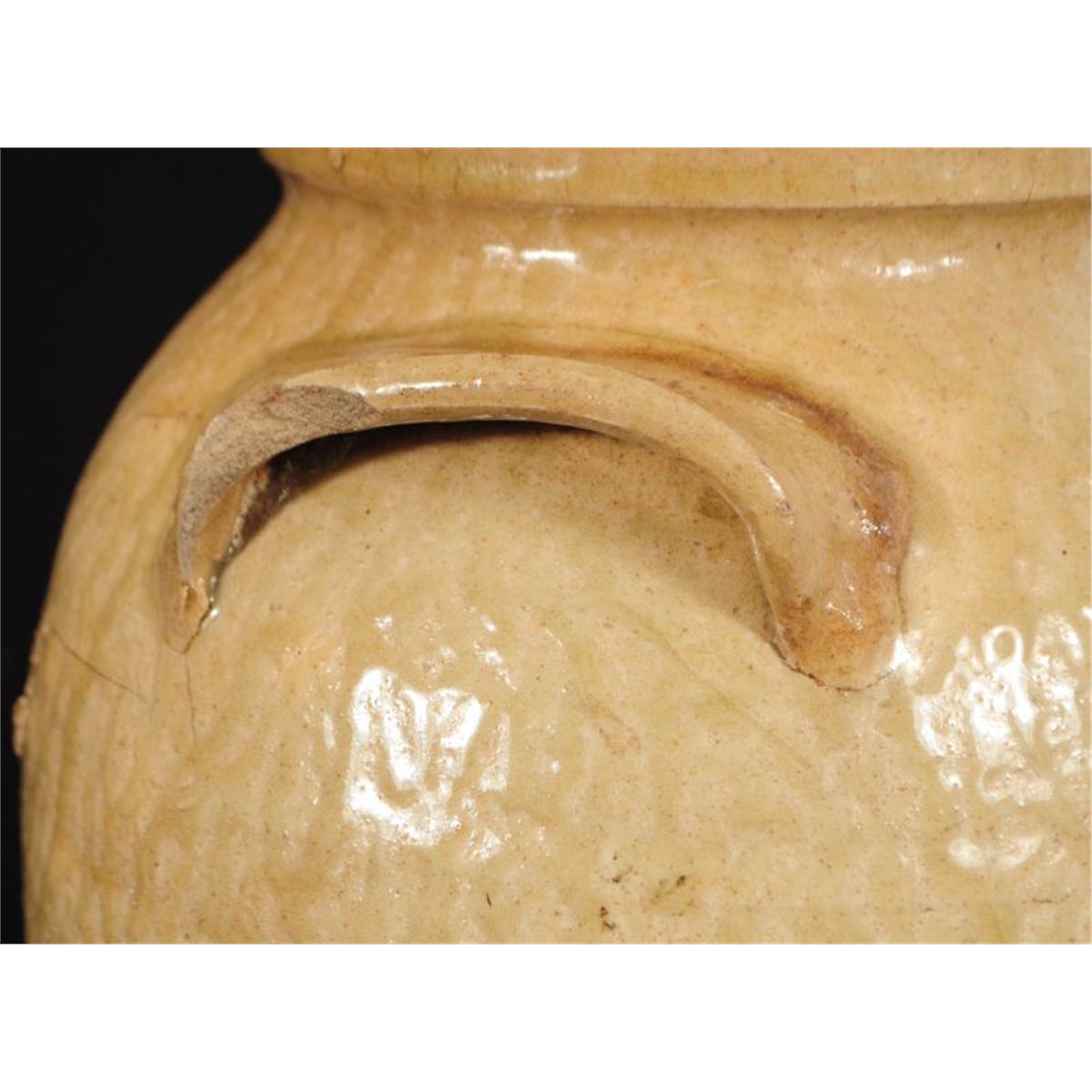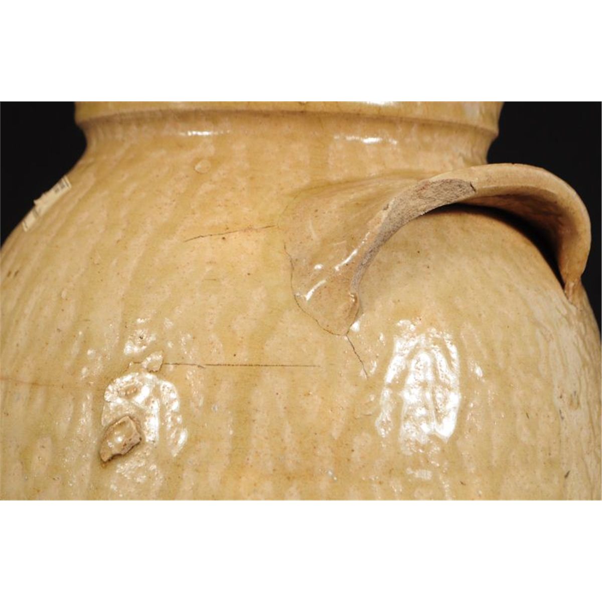 Attributed to John Leopard. Beautiful glaze and form. Minor rim chips. Ash glaze. 16". Ex-collection of Georgeanna Greer and Ex-collection of John Olson. See Page 31 of Texas Pottery/Star of the Republic Museum Circa 1860.