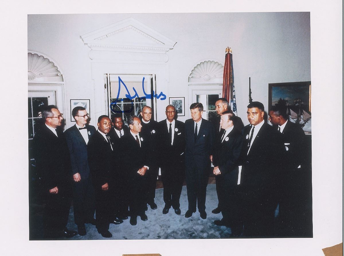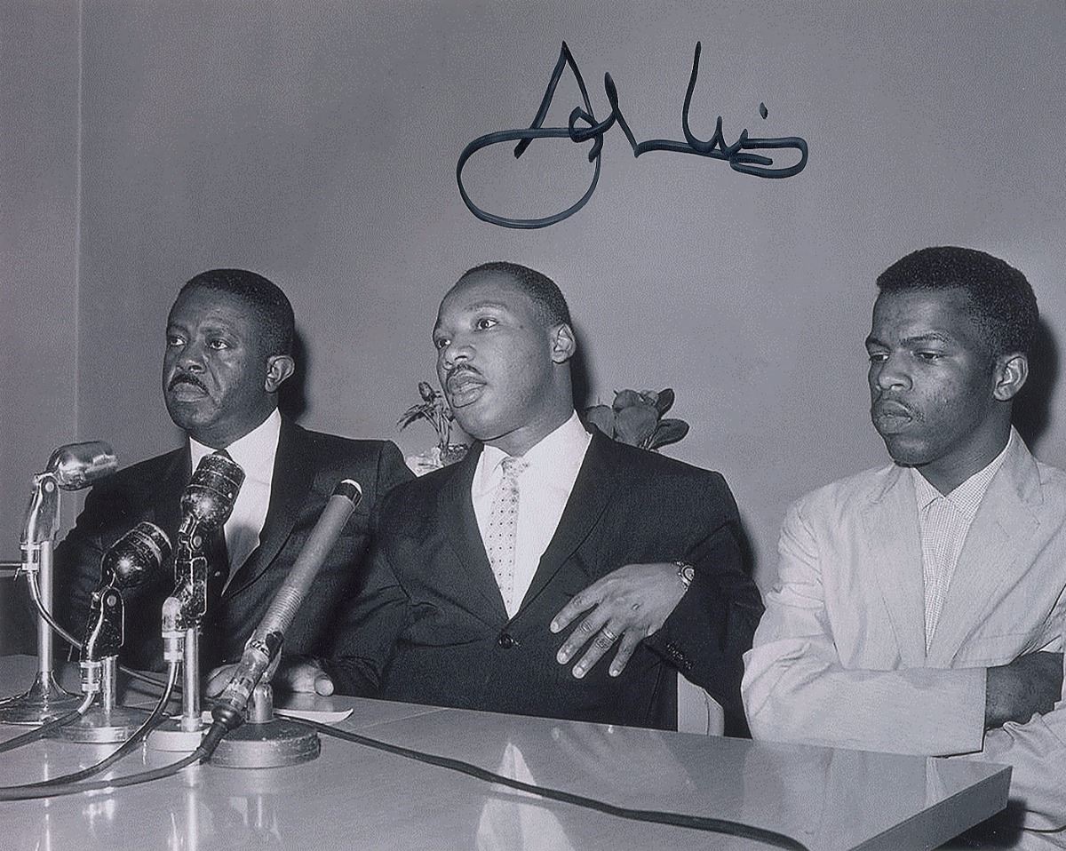 American politician (born 1940) who is the only living ‘Big Six’ leader of the African-American Civil Rights Movement. Set of three satin-finish photos of John Lewis during the Civil Rights movement, two of which picture John F. Kennedy and Martin Luther King, Jr., 8 x 10 and 10 x 8, each signed by Lewis in blue or black felt tip. In overall very fine condition, with a JSA label affixed to the reverse of each photo. Accompanied by three certificates of authenticity from JSA.