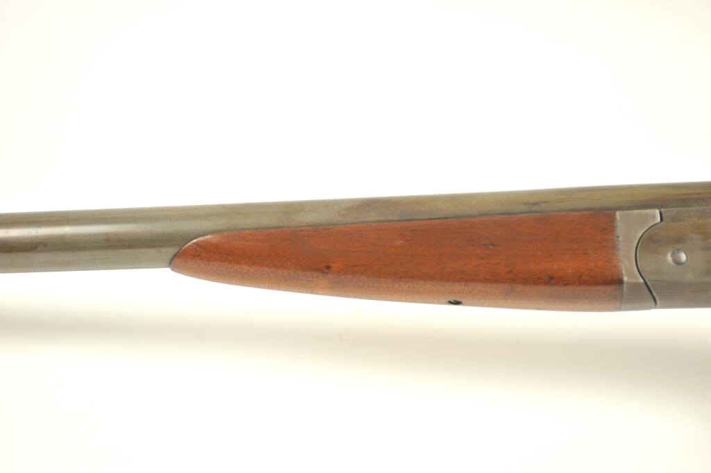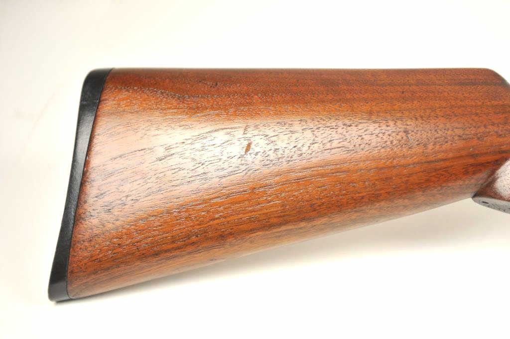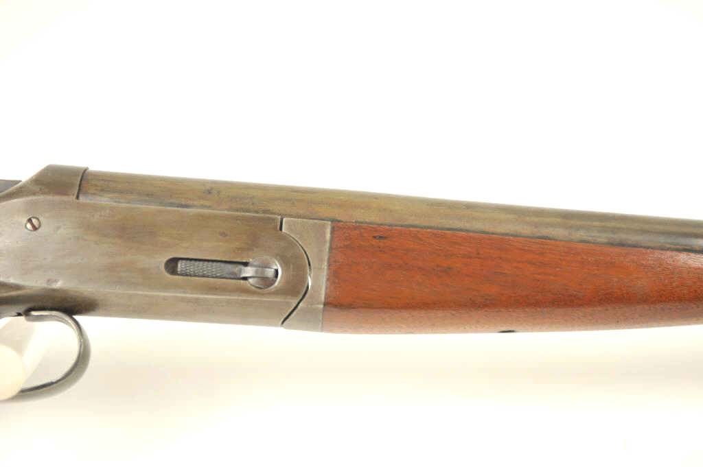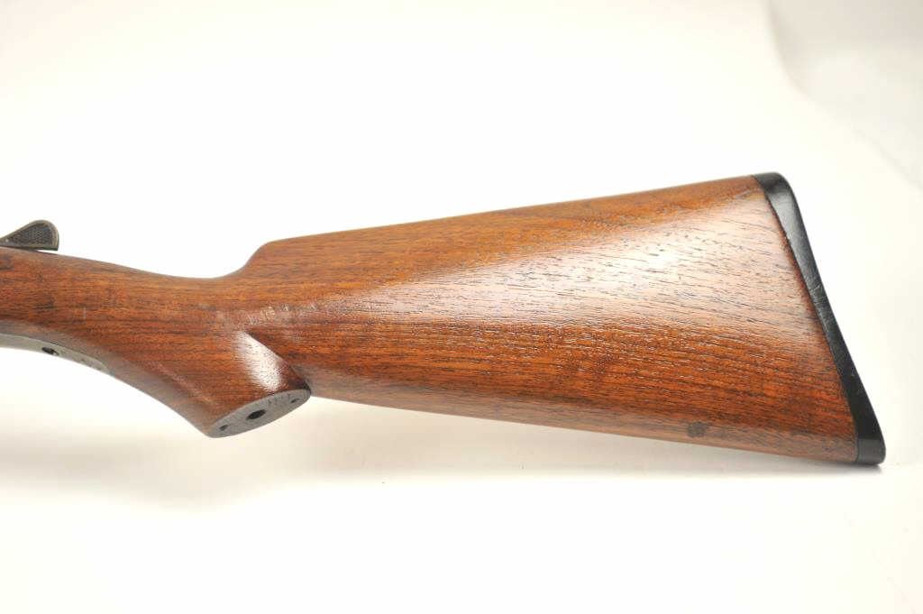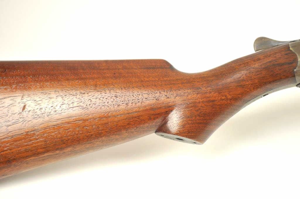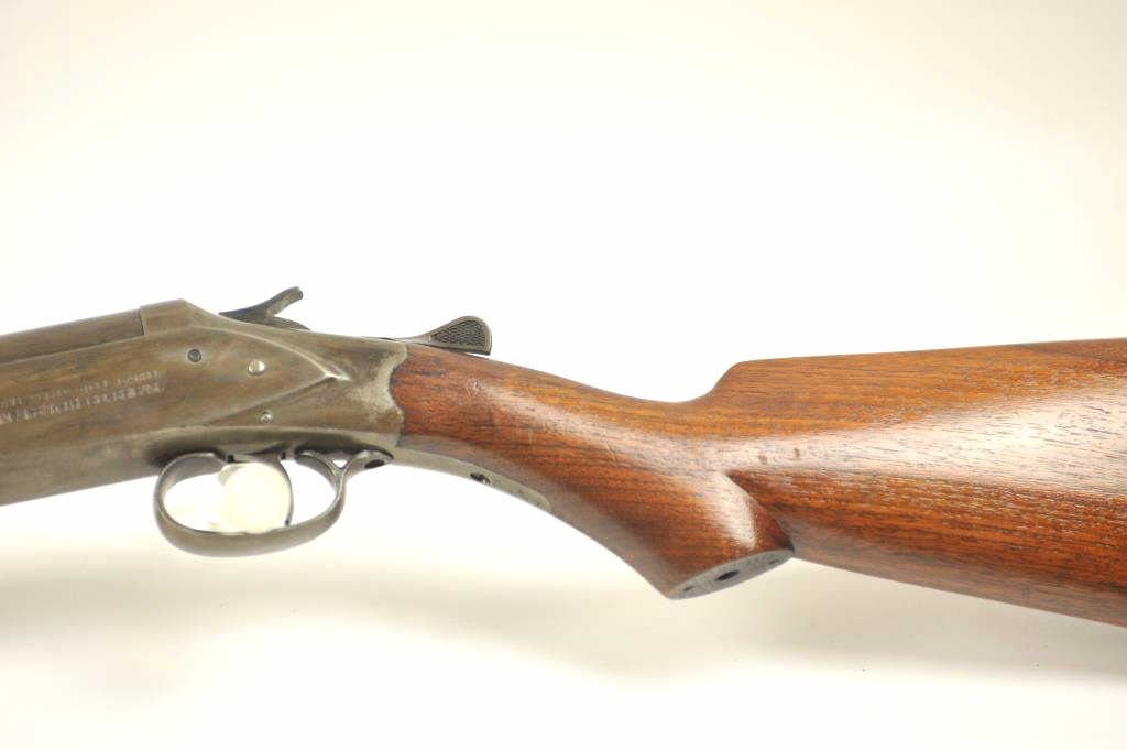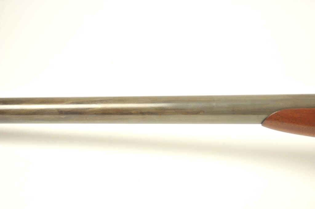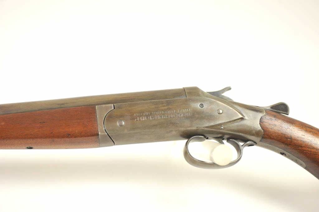 John M. Smyth single shot shotgun, 12 gauge, Serial #KA 987. The shotgun is in good overall condition with a 32” barrel marked, “CHOKE BORE”. The shotgun has gone to a medium patina with cold blue added in places. The smooth wood stock is in very good condition with a checkered plastic butt plate providing a 14” LOP. The bore is good and the action works well. Est.: $100-$200. (C+R).