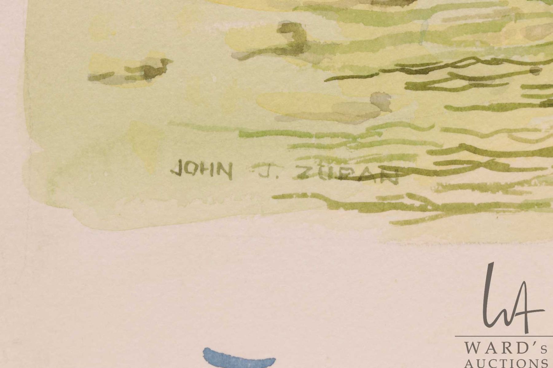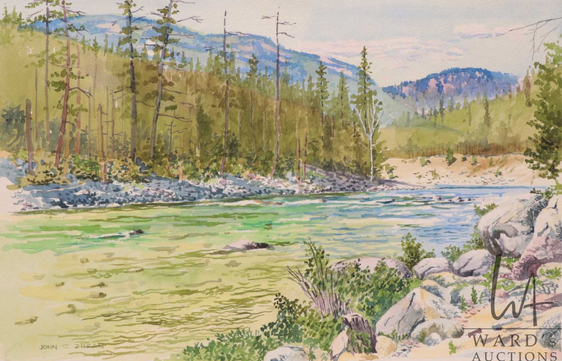 John M. Zupan (1941-1998) unframed original watercolour and ink drawing, titled " Similkamen River a