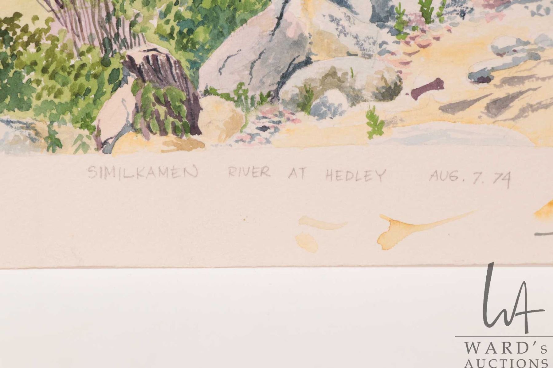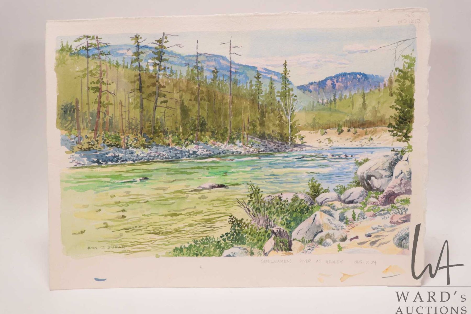 John M. Zupan (1941-1998) unframed original watercolour and ink drawing, titled " Similkamen River at Hedley Aug. 7. 74, 9" X 14"