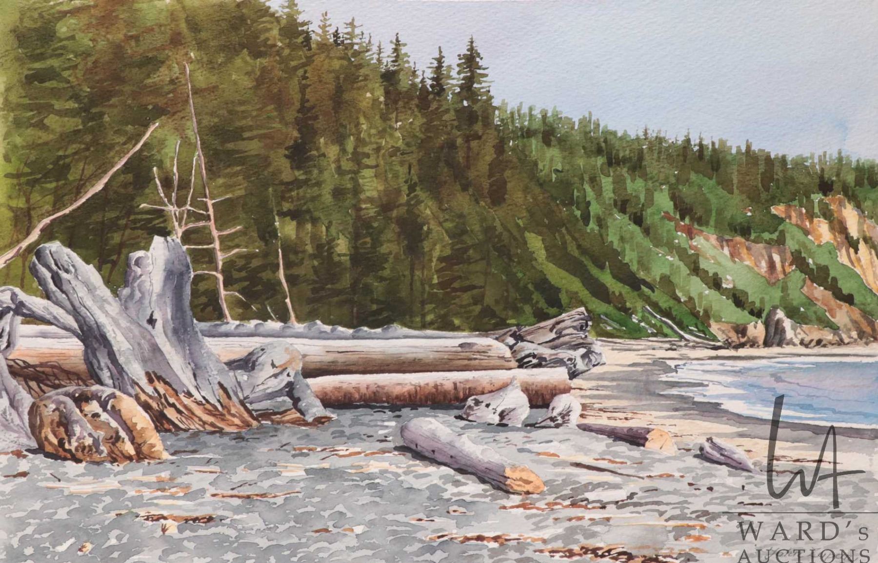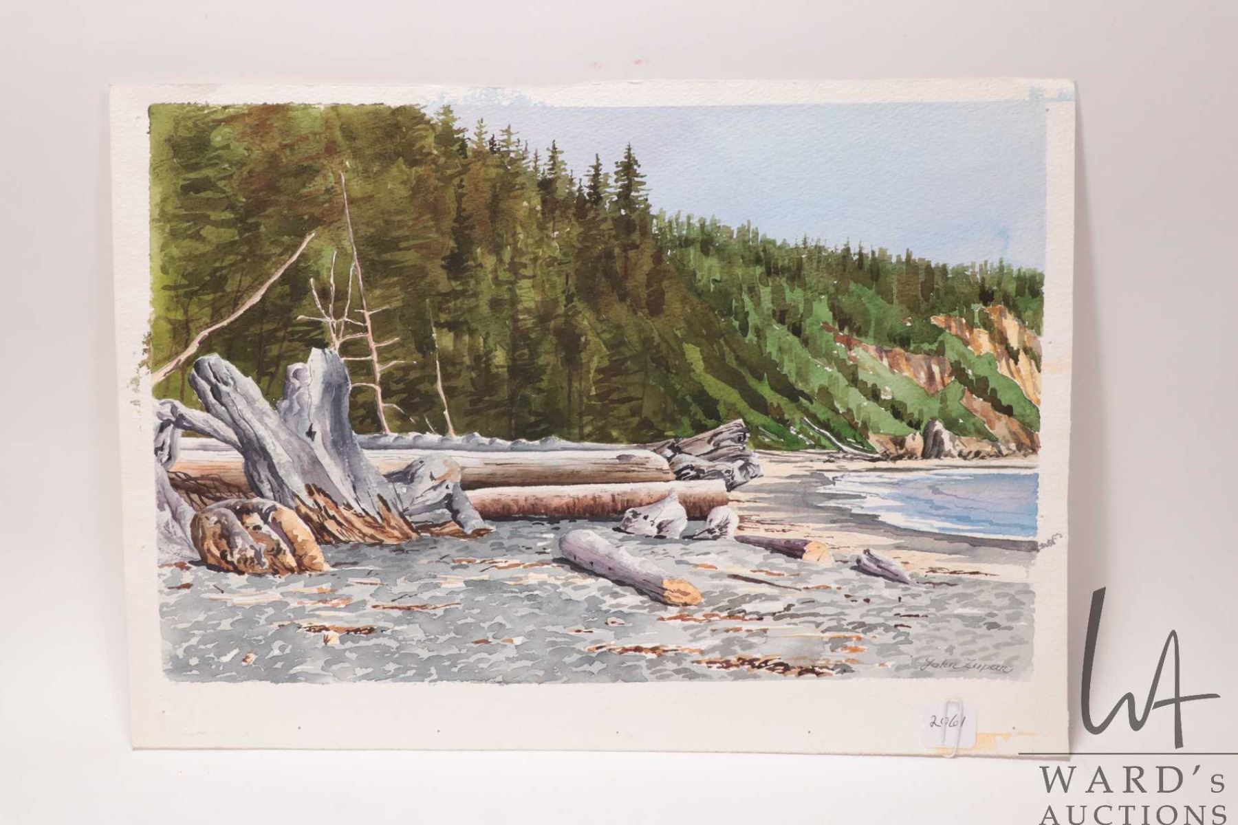 John M. Zupan (1941-1998) unframed original watercolour painting of a coastal beach scene, signed by artist 1/2" x 15 1/2"