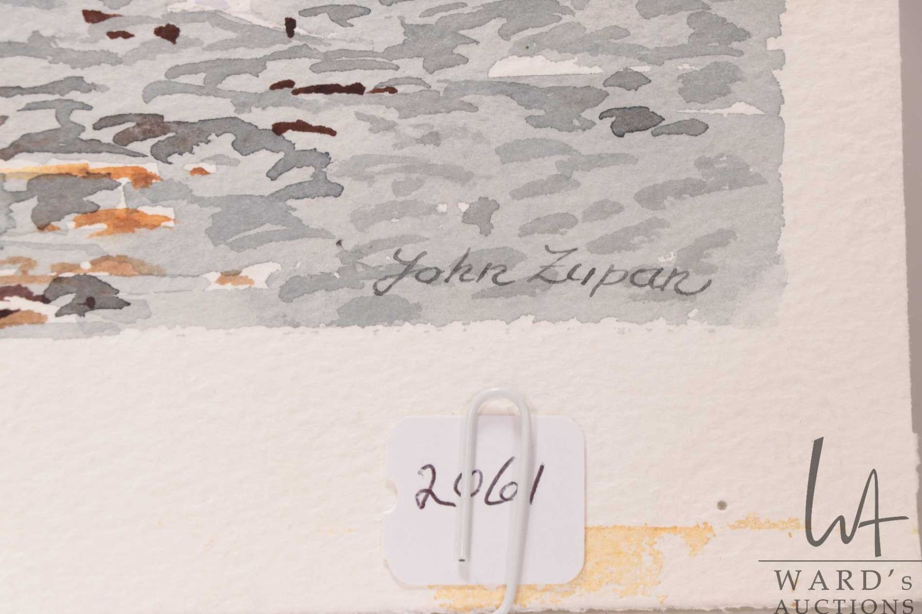 John M. Zupan (1941-1998) unframed original watercolour painting of a coastal beach scene, signed by