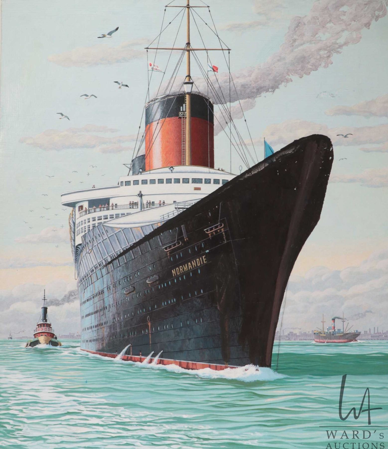 John M. Zupan (1941-1998) unsigned and unframed acrylic on board painting of the ship Normandie. From the estate of the artist and presumed to be his work, 19" X 16"