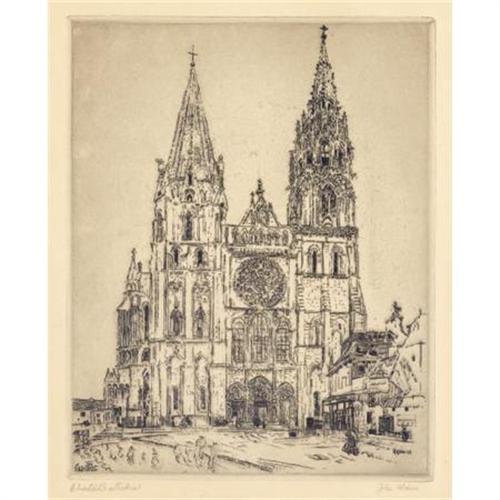 <B>JOHN MARIN (American, 1870-1953)</B></I><BR><I>Chartres Cathedral</B></I>, 1910<BR>Etching on paper<BR>11-1/4 x 9 inches (28.7 x 22.9 cm)<BR>Signed and dated in the plate and signed in pencil lower right: <I>Marin / 10</B></I> Titled in the plate: <I>Chartres</B></I>; and in pencil lower left: <I>Chartres Cathedral</B></I><B>Condition Report:</B> Overall very good condition, minor toning, mounted with two top hinges.<BR><BR><b>Shipping:</b> Requires 3rd Party Shipping (<a target="_blank" href="http://www.heritageauctions.com/common/shipping.php">view shipping information</a>)