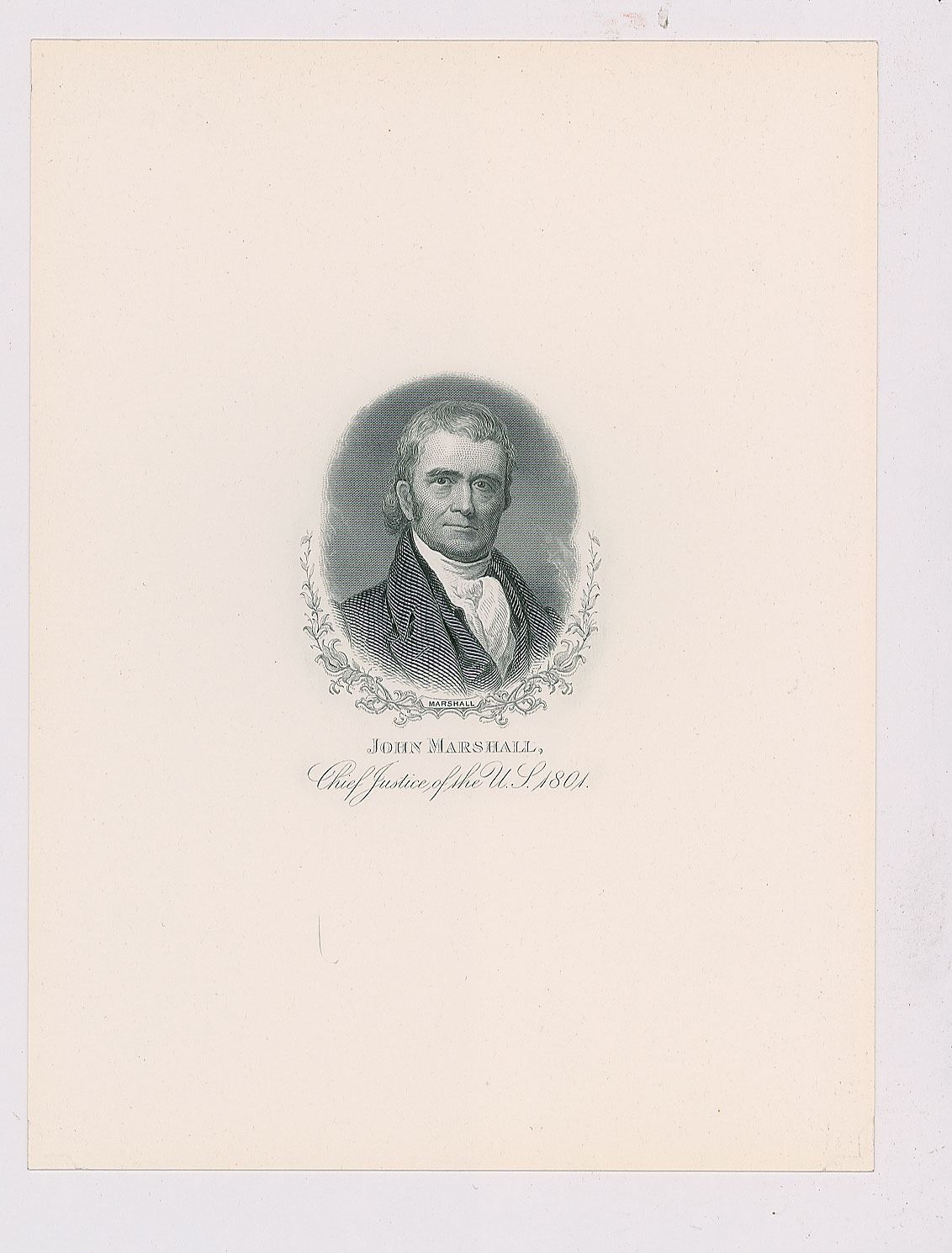 ADS signed "J. Marshall," one page, 7.75 x 2.5, May 2, 1826. Handwritten pay order, in full: "To the cashier of the office of discount and deposit of the Bank of the United States at Washington, Pay the cashier of the office of discount and deposit of the Bank of the United States at Richmond one hundred and seventy dollars." In very good to fine condition, with a block of slightly irregular toning to the center, and light show-through from old mounting remnants on the reverse. Accompanied by an unsigned engraved portrait.