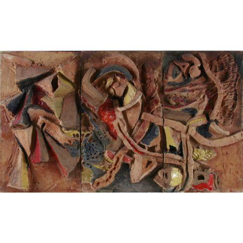 Artist Name: John Mason<BR>Manufacturer: <BR>Description: Untitled (Triptych)<BR>Circa: Executed 1959<BR>Medium: Partially glazed ceramic relief in three sections<BR>Signature: Signed lower right<BR>Measurements: 42.5"h x 72.5"l x 8"d<BR>Edition: <BR>Note