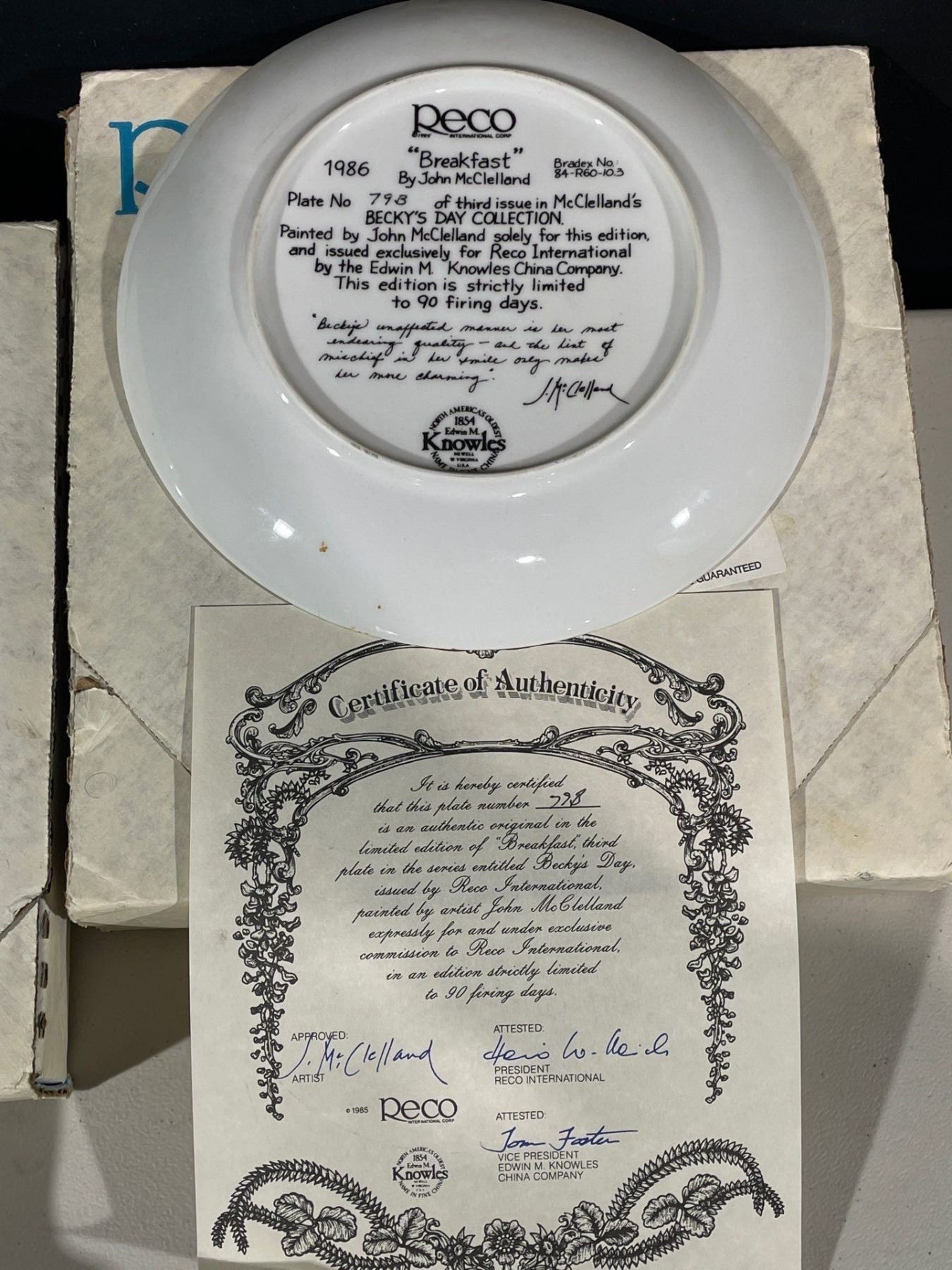 John McClelland Limited Edition Plate Collection "Becky's Day" W/Certificate's of Authenticity QTY6