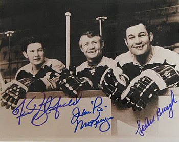Johnny Bucyk was a hockey left winger and member of the Hockey Hall of Fame. Having played most of his career with the Boston Bruins, he has been associated in one capacity or another with the Bruins' organization since the late 1950s. When the Bruins became a powerhouse in the late Sixties Bucyk proved particularly effective playing on the left side on Boston's greatly feared power play unit, which featured Phil Esposito, John McKenzie, Bobby Orr and Fred Stanfield. Fred Stanfield played 14 seasons in the National Hockey League from 1964 until 1978. He won two Stanley Cups with the Boston Bruins, in 1970 and 1972. John "Pie" McKenzie played in the National Hockey League (NHL) for several seasons, most notably with the Boston Bruins, with whom he was a member of two Stanley Cup championship teams. Fred Stanfield, John "Pie" McKenzie and Johnny Bucyk and have all signed this Boston Bruins 8x10 Photo (McKenzie with "Pie" inscription). Certificate of Authenticity from Athlon Sports Collectibles.