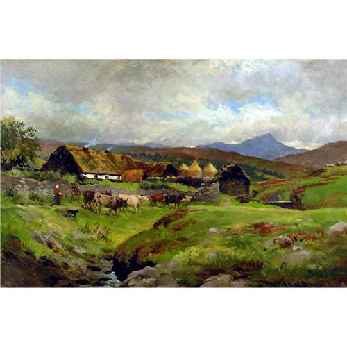 [Scottish b. 1819 exh. 1838-1878] UNTITLED (HIGHLAND CROFT WITH CATTLE BY A STREAM); ca 1842 Oil on canvas 20.5 x 29.5 in.