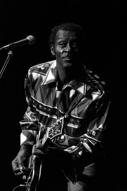 signed and inscribed ["Chuck Berry, Rock and Roll legend, photographed in London 1988"] in the lower margin; with artist's copyright stamps on reverse