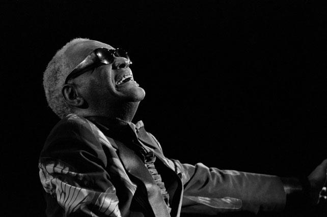 signed and inscribed ["Ray Charles pictured at a concert in Waterford Ireland 1993"] in the lower margin; with artist's copyright stamps on reverse