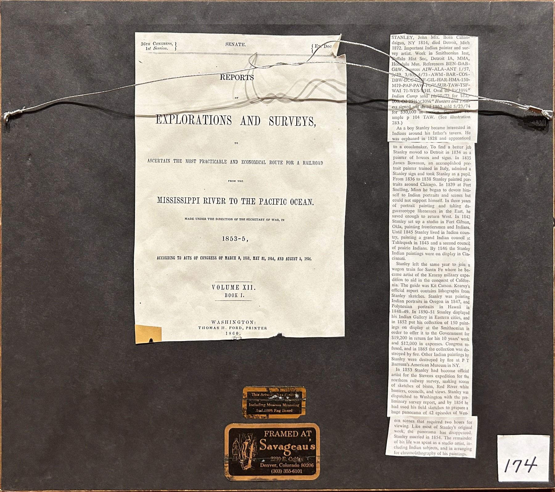 Stevens Report, RR Survey, Miss. To Pacific Ocean, 47th and 49th Parallels, Volume 12. Printed by Thomas. H. Ford. 1860.