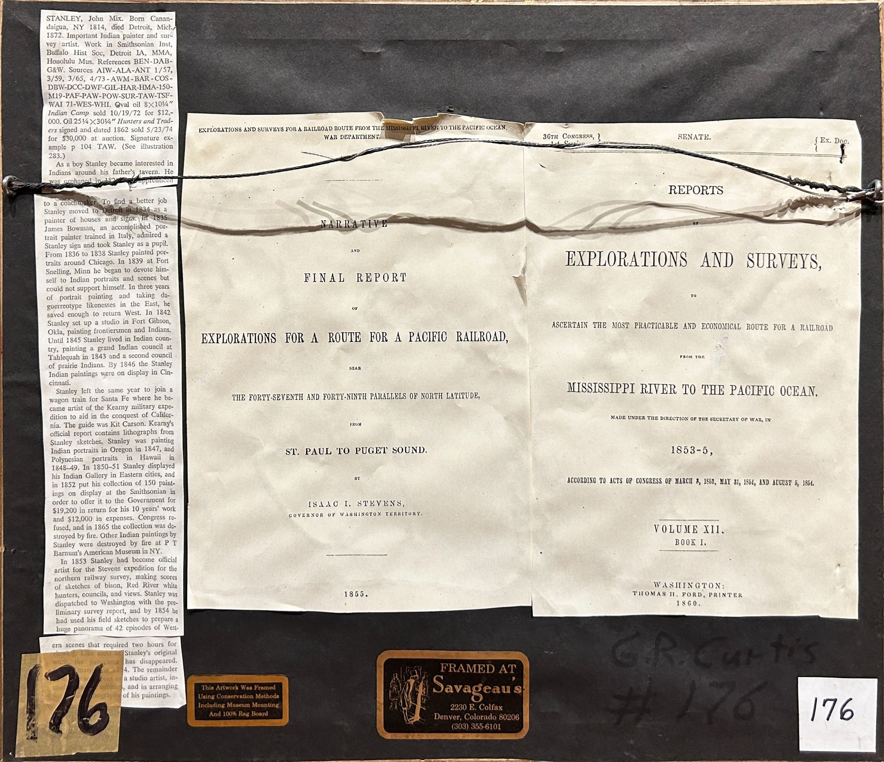 Stevens Report, RR Survey, Miss. To Pacific Ocean, 47th and 49th Parallels, Volume 12. Printed by Thomas. H. Ford. 1860.