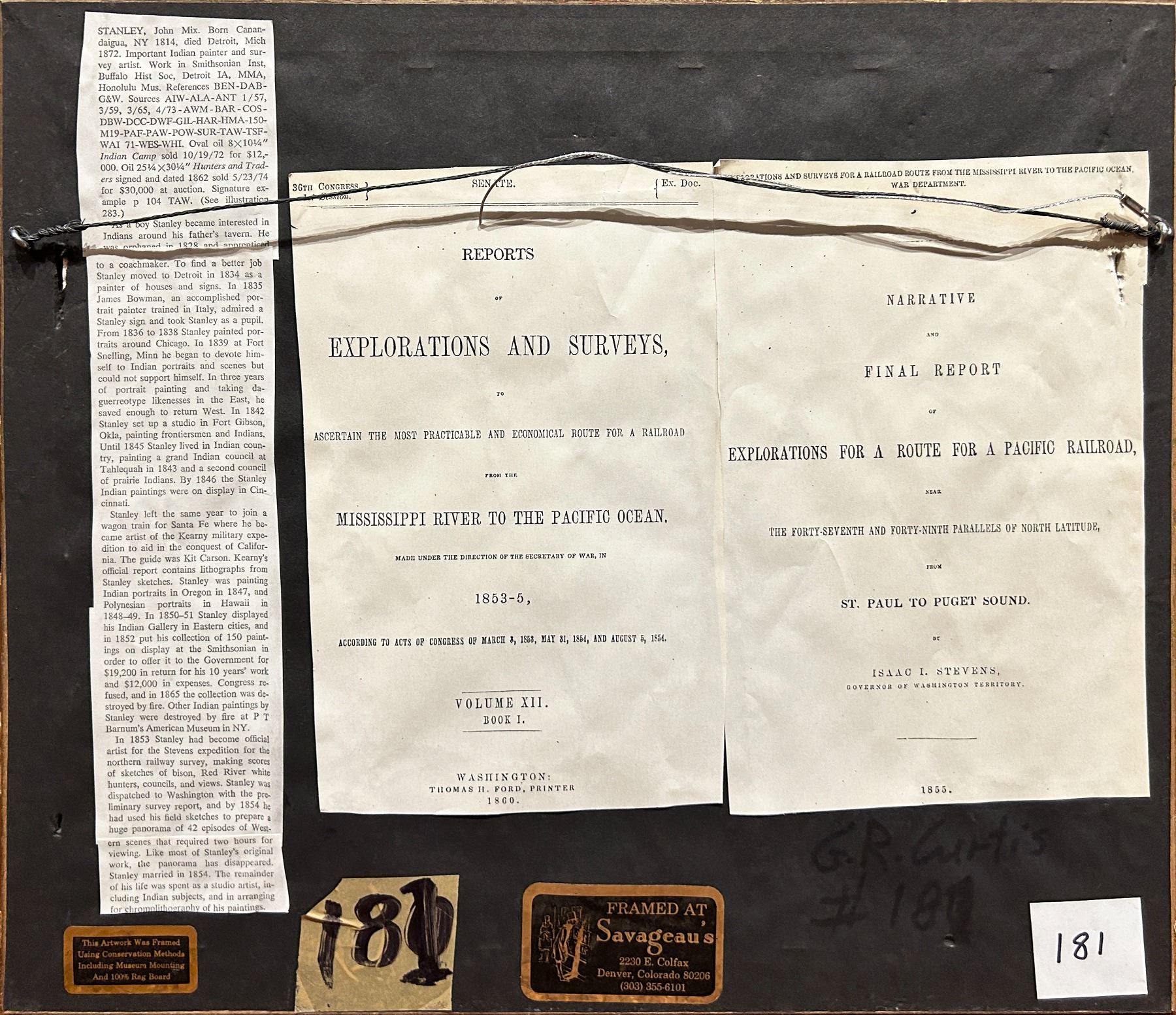 Stevens Report, RR Survey, Miss. To Pacific Ocean, 47th and 49th Parallels, Volume 12. Printed by Thomas. H. Ford. 1860.