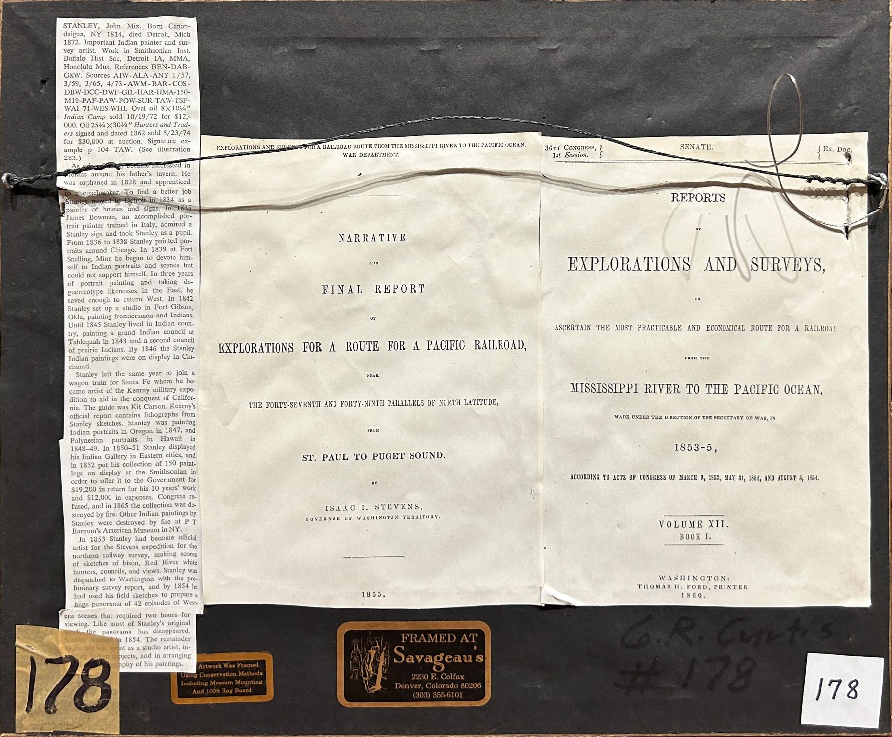 Stevens Report, RR Survey, Miss. To Pacific Ocean, 47th and 49th Parallels, Volume 12. Printed by Thomas. H. Ford. 1860.