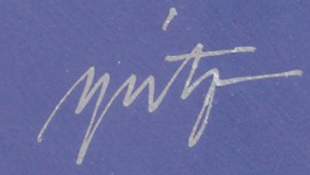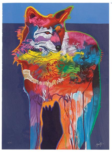 Signed limited edition (#70/195) full color serigraph "Coyote Survivor". Shrink wrapped on foam core. Condition: excellent. 33" x 26"
