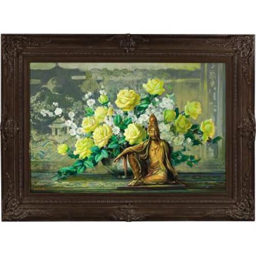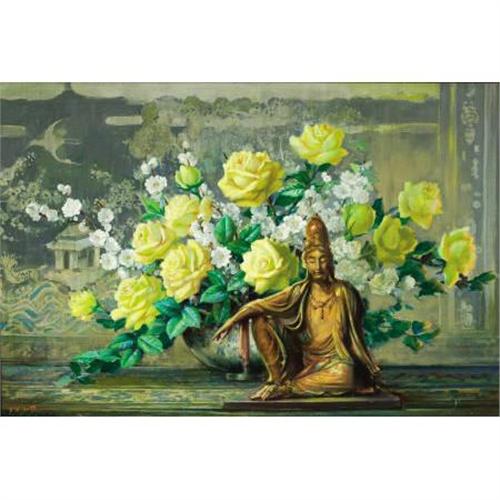 John Orth, Oil on canvas, Buddah and Yellow Rose