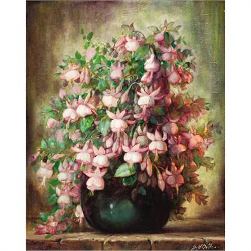 <B>JOHN WILLIAM ORTH (American, 1889-1976)</B></I><BR><I>Fuchsias</B></I><BR>Oil on canvas<BR>30 x 24 inches (76.2 x 61.0 cm)<BR>Signed lower right: <I>J.W. Orth</B></I><BR>Signed and titled verso<BR> <BR>PROVENANCE:<BR>Estate of John Orth<BR><B>Condition Report:</B> Excellent condition. <BR><BR><b>Shipping:</b> Framed - without Glass, Medium (<a target="_blank" href="http://www.heritageauctions.com/common/shipping.php">view shipping information</a>)