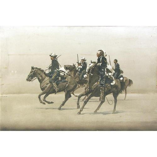 John Pace (Arizona) Oil on Canvas, Soldiers on Horseback, 1982, 20" x 30", signed mid left