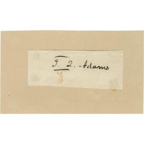 <B>John Quincy Adams Signature,</B></I> likely a franking signature cut from a cover, 3" x 1.25", with partial "FREE" stamp just beneath. Mounted to a slightly larger sheet, very good.<BR><BR><b>Shipping:</b> Flat Material, Small (<a target="_blank" href="http://www.heritageauctions.com/common/shipping.php">view shipping information</a>\)