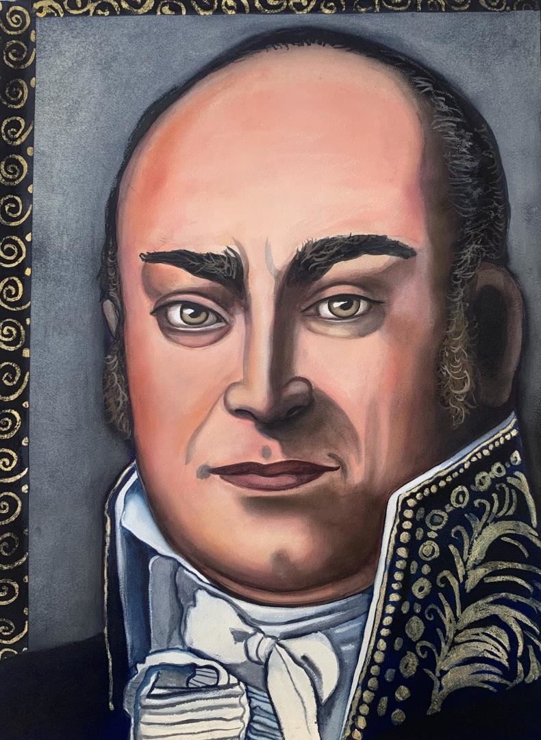 A pastel & watercolor portrait of the 6th President , diplomat and Statesman .24x18" on deckled fine art paper, by Anonymous