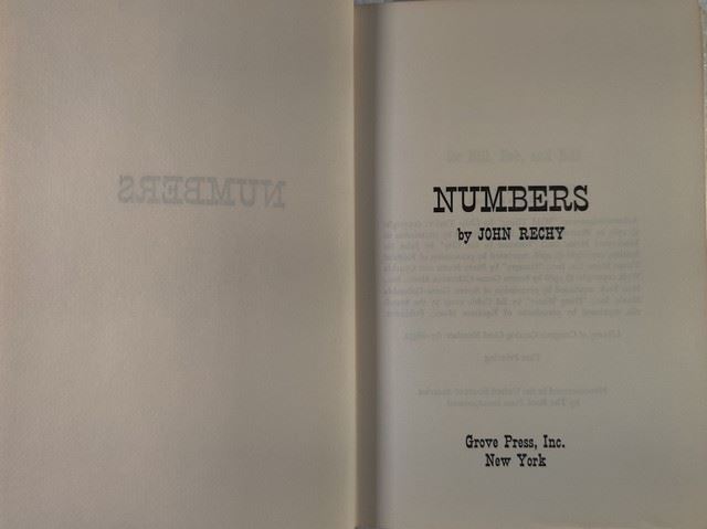 Numbers (Grove Press Inc., 1967) hard cover book, written and signed by John Rechy. 256 pages.